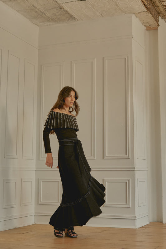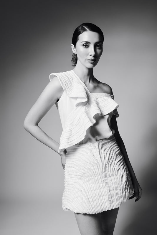 AgotadoFalda Pitillo Tiras Denim Marfil