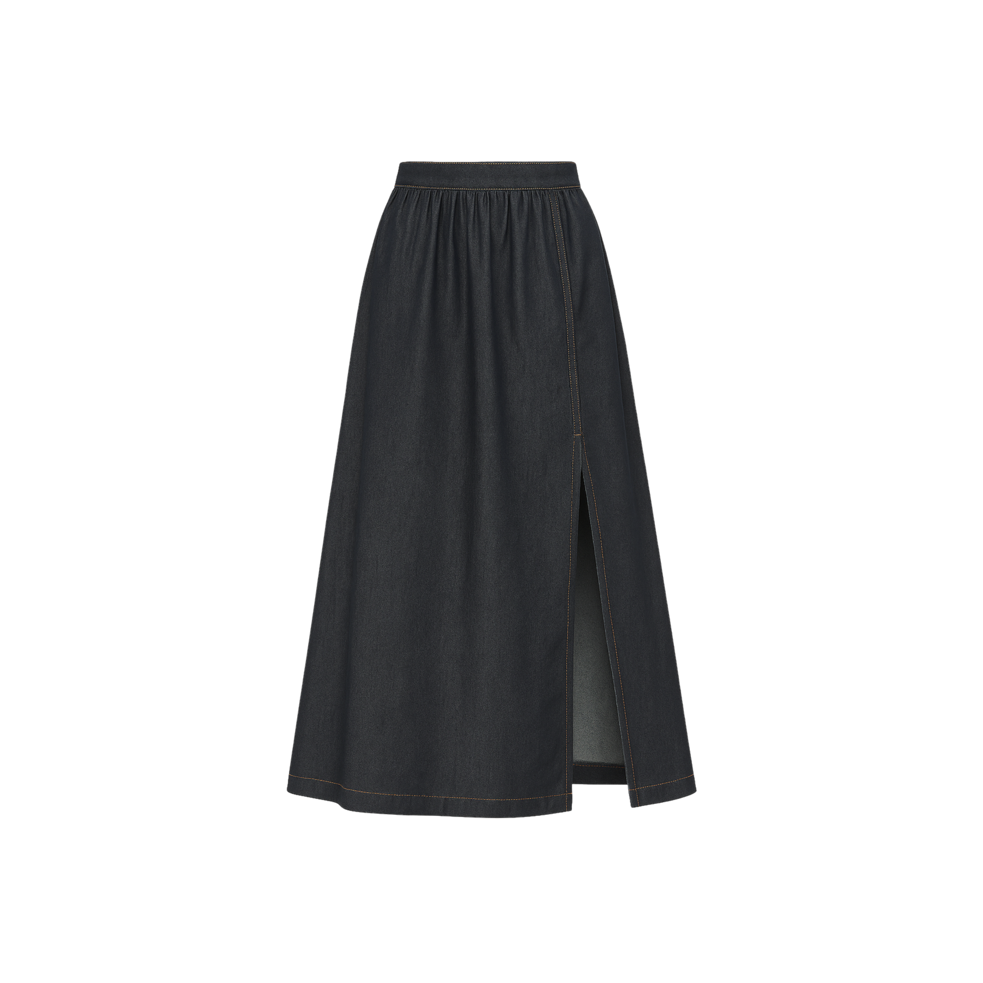La Falda Brisa combina una pretina alta con una falda amplia que se mueve de forma natural. Su abertura lateral añade fluidez y comodidad, mientras que el denim azul oscuro le da un aire atemporal. Una pieza versátil que funciona tanto para looks relajados como más elaborados.
